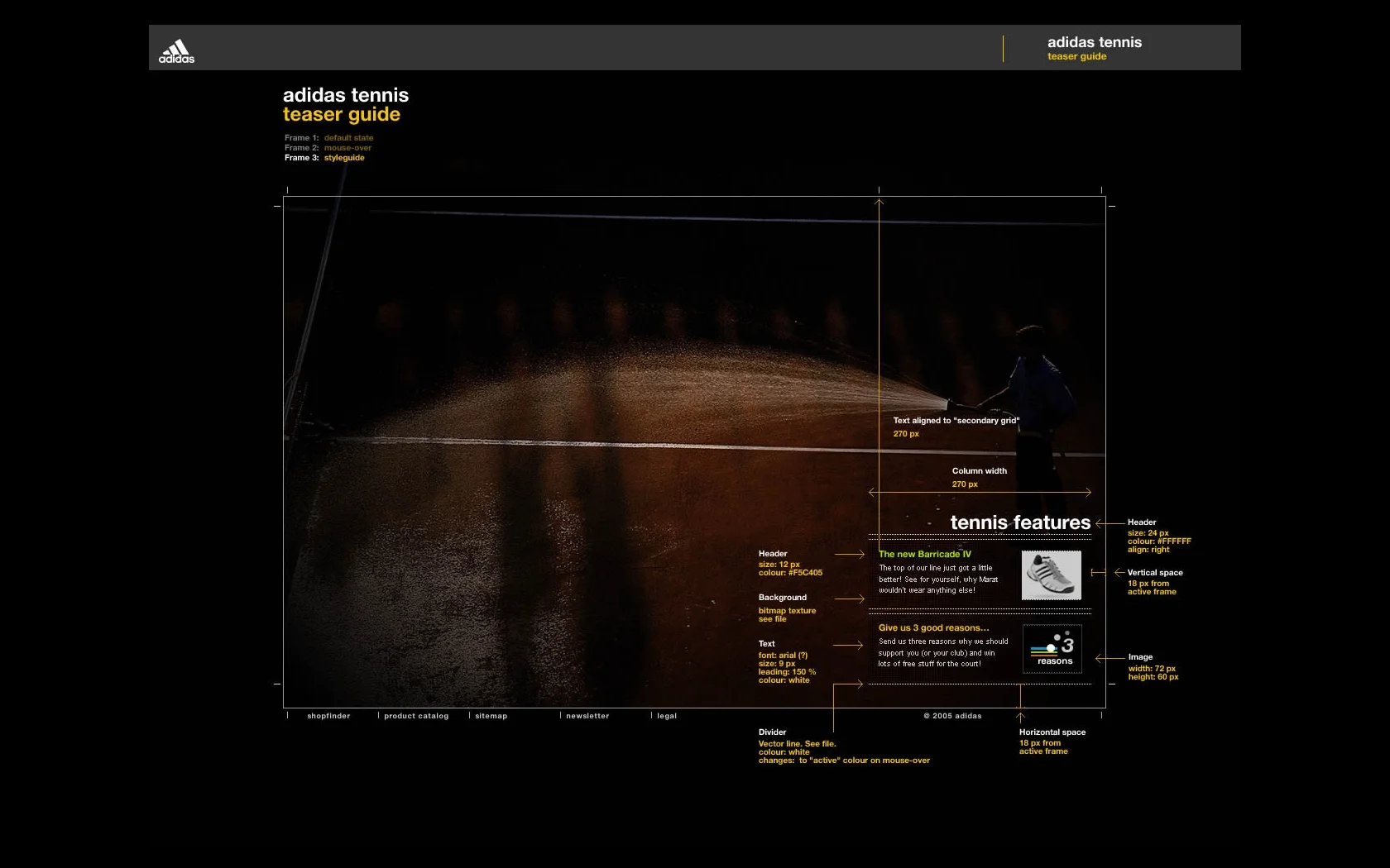 Long before responsive design was an established concept, we conceived a dynamic environment for the relaunch of Adidas Tennis, creating content layout algorithms that designed specifically for variation in presentation right from the start.