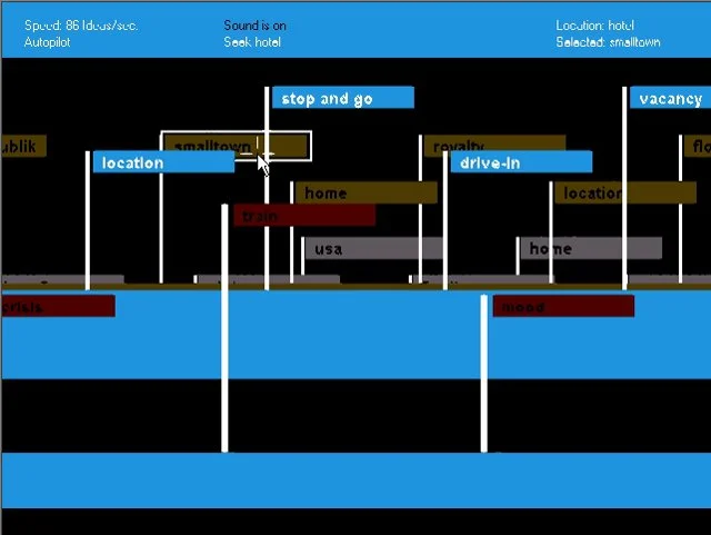 This first (ever?) full-screen interaction (opened in a Java applet and from our genius-in-residence, Jan-Michael Studt) was the first of many java experiments before Flash was out of beta.